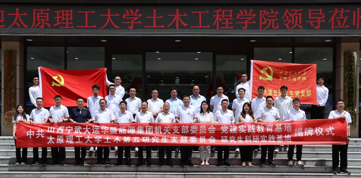 为深入贯彻党的二十大精神,全面落实产教融合战略部署,推进党建联建与科技创新、人才培养工作深度融合,积极探索党建与科研创新双融双促新思路,探索校企党建共建新模式,立科研先锋,促协同发展。2024年6月21日上午,学院党委书记武佐君、基础部主任王蕊、土木第五研究生党支部书记刘晓玲带领支部党员代表前往山西宁武大运华盛能源集团,与集团机关党支部开展党建共建签约暨党建实践教育基地、研究生科研实践基地揭牌仪式。山西宁武大运华盛能源集团有限公司董事长王和平、总经理王利平、集团纪检书记曹朝晖、总工程师郭文奎、机关党支部书记刘贵文,以及相关工作人员出席了仪式,并由王利平总经理主持签约仪式。