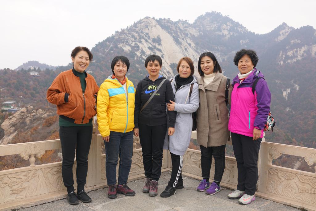 一路上,大家欢声笑语,氛围格外轻松,时而快步前进,时而驻足歇息,欣赏秋日美景。大家不时擦拭着脸上的汗水,兴奋之情溢于言表,从山下到山上,处处充满了温馨与愉快,攀爬过程中,大家团结友爱、互帮互助,笑迎困难,挑战体能“极限”。年轻的你追我赶,年长的相互搀扶,相互拍照,走走停停,不忍错过每一处美景,欢声笑语伴着阵阵音乐声,回荡在山谷中,工作的紧张和压力在此得到了尽情的释放。登山过程中,大家也对生活和工作中遇到的问题、积累的经验,进行了广泛的交流与讨论,彼此增进了了解,开阔了思路,加深了友谊。