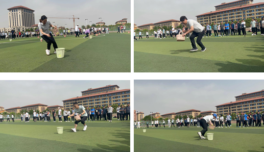 校运动会的目的在于活跃校园文化氛围,加强教师之间的交流,激发教师们进行体育锻炼的意识,丰富教职工的业余生活。在“抢种抢收”比赛场上,姚鑫等6位老师个个干劲十足,热情高涨。比赛要求老师们依次在跑步中将道具放入地上的筐中,然后交由下一个老师依次收集,如此往复。