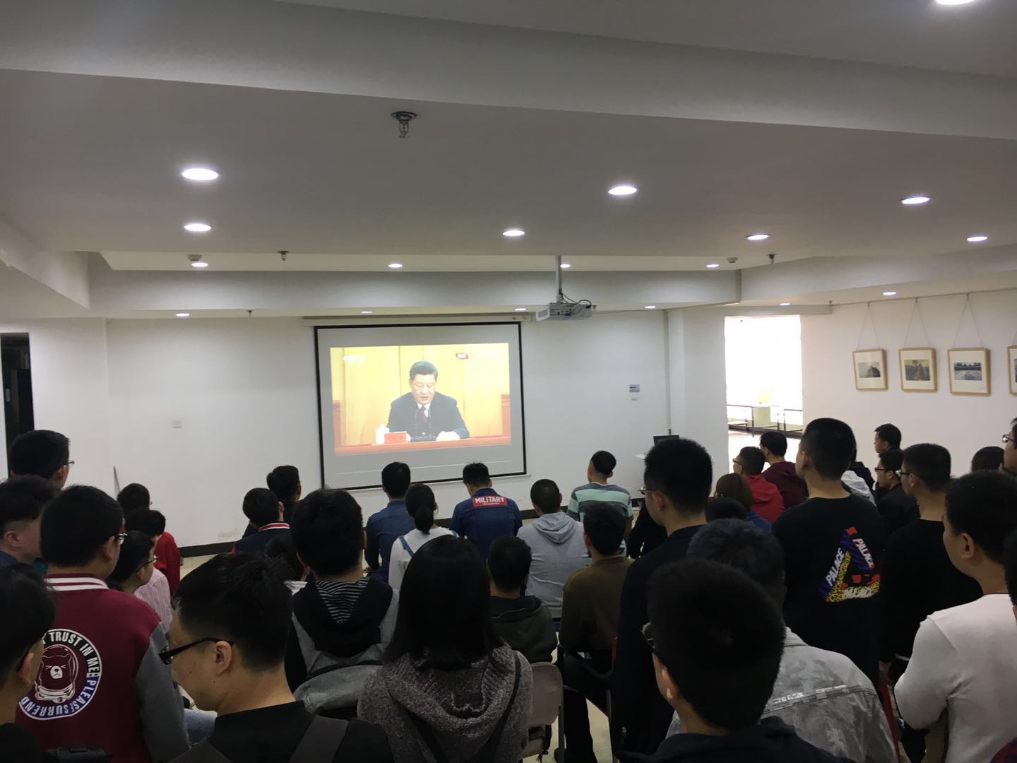 在场的50余人屏气凝神认真收看收听,还在直播后通过微信群、QQ群、朋友圈等方式畅聊分享了自己的心得体会。
