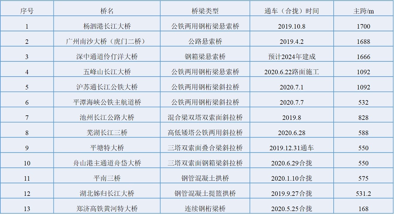 2019~2020中国大跨度桥梁建设新成就