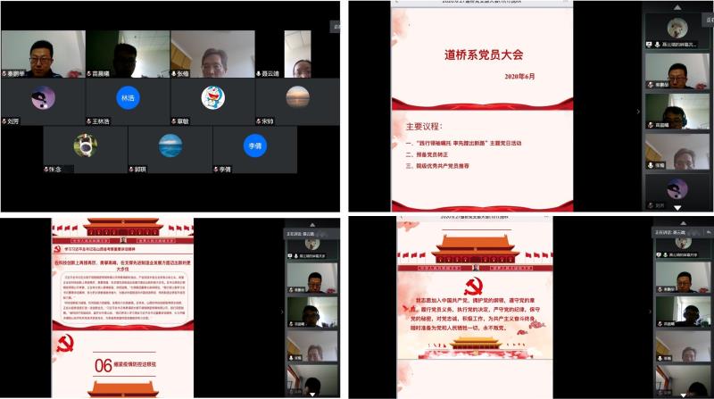 在党的99岁生日来临之际, 6月27日中共太原理工大学道桥系支部通过网络会议,举行了“践行领袖嘱托 率先蹚出新路”主题党日活动。会议围绕集中学习习近平总书记重要讲话重要指示、重温入党誓词和选举院优秀党员议题展开。
