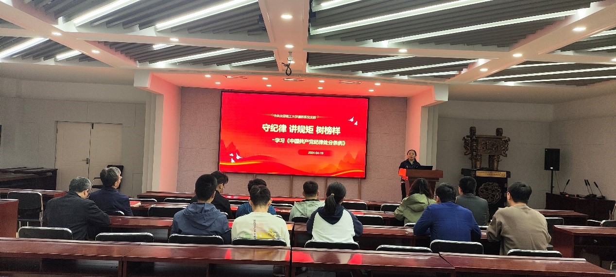 2024年4月20日下午,为深入学习《中国共产党纪律处分条例》,道桥系党支部在博学馆五层会议室举办了“守纪律 讲规矩 树榜样”主题党日活动。系主任张翛及全系教职工参加,本次活动由党支部书记聂云靖主持。
