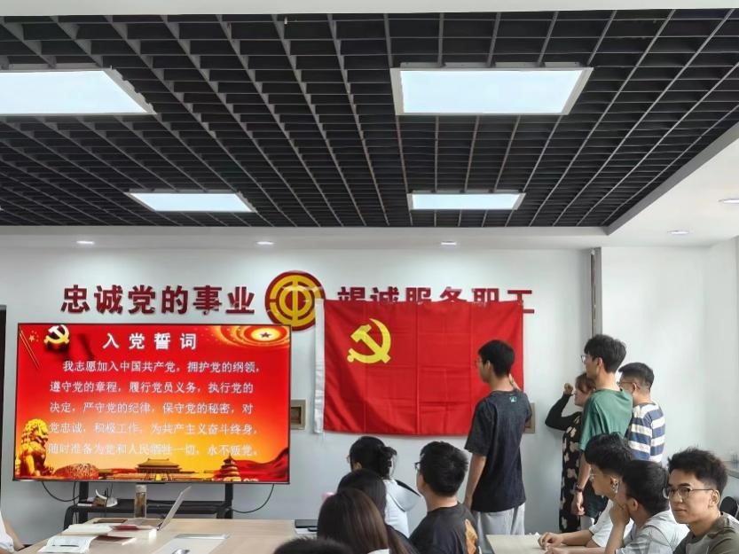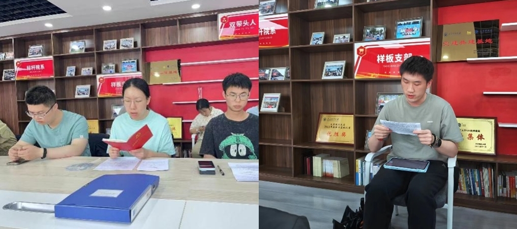2024年5月31日,土木第二研究生党支部在博学馆工会之家召开党支部大会,讨论接收预备党员以及集中学习《中国共产党纪律处分条例》。大会应到党员34名,实到党员31名,其中正式党员27名,对接收发展对象白烨为中共预备党员进行讨论和表决。在两位入党介绍人表明对被考察人的意见以及汇报发展对象的政审情况后,大会进行无记名投票,同意接收白烨同志为中共预备党员。所有预备党员面对党旗完成入党宣誓仪式后,党支部书记对预备党员提出期望。
