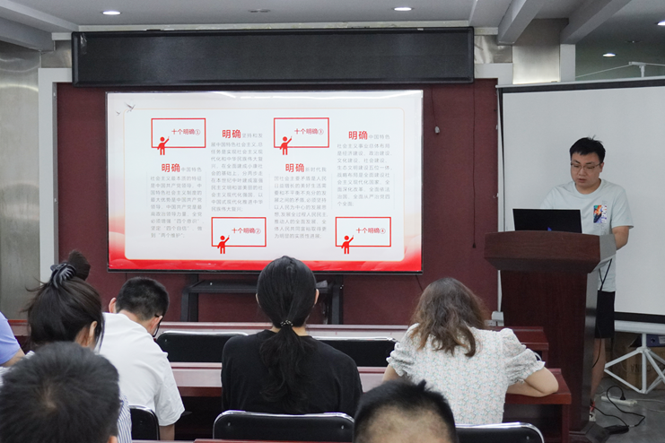 党员吕奕鸣以“习近平新时代中国特色社会主义思想”为主题,着重阐述了由《中共中央关于党的百年奋斗重大成就和历史经验的决议》提出的“十个明确”的具体内容、精神实质和丰富内涵,“十个明确”是对新时代的实践总结也是理论概括,是习近平新时代中国特色社会主义思想的精神实质、核心要义,所蕴含的战略思想和创新理念,是党对中国特色社会主义建设规律认识深化和理论创新的重大成果,深刻回答了新时代的重大时代课题。