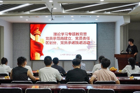 为深入学习贯彻习近平新时代中国特色社会主义思想的和加强支部战斗堡垒作用,6月30日晚,土木第一研究生党支部开展理论学习专题教育暨党员示范岗建立、党员责任区划分活动,本次活动分为三个部分,活动由支部组织委员李波主持。