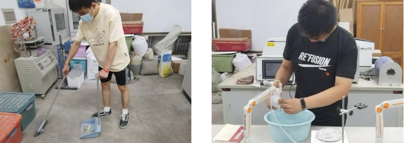 此次活动的主要内容是对博学馆一楼的综合实验室进行打扫清理。4名党员在确定各自的清理任务后,都以积极、热情、饱满的工作态度参与其中,将综合实验室的各角落都认真打扫,并将实验室的仪器都摆放整齐,使实验室焕然一新、整洁明亮,为实验室的环境清洁奉献出了自己的一份力量,真正做到了为人民服务的誓言。