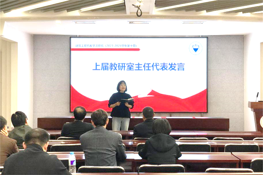 上届教研室主任代表原施工教研室主任张玉就她在任期间的工作感想进行发言。张玉回顾了她在当教研室主任期间的经历,就其工作经验进行了分享,希望新任的教研室主任、副主任们取其精华、去其糟粕,更好地完成教研室工作。