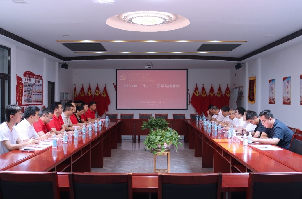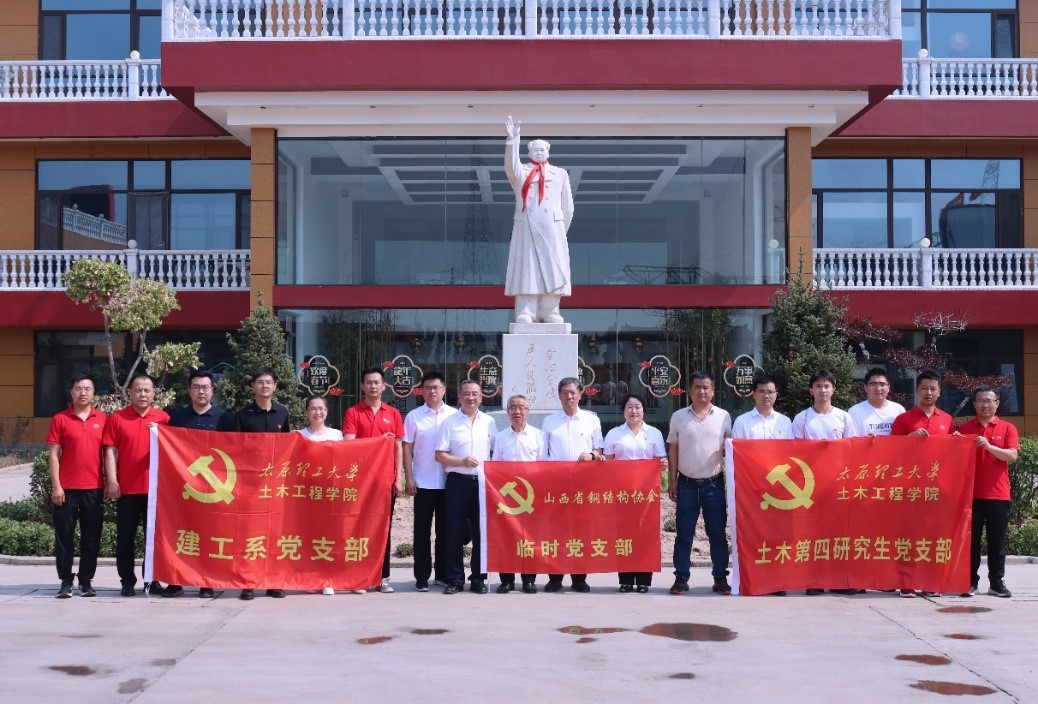 为庆祝中国共产党成立103周年,进一步深入学习贯彻落实习近平新时代中国特色社会主义思想及党的二十大精神,全面推进基层党组织建设,积极探索“党建+业务”深度融合模式,构建“党建引领、校企合作、发展共赢”的党建新格局。2024年6月28日上午,太原理工大学建工系党支部联同土木第四研究生党支部、山西省钢结构协会临时党支部和山西栋航彩钢钢结构有限公司,共同举办了七一党建共建活动,并举行了党建共建基地的揭牌仪式。参加此次活动的主要人员有:山西省钢结构协会临时党支部书记沈沛鸿、会长李海旺、秘书长兼支部副书记石彦卿、常务副会长张波、副秘书长李卫文,太原理工大学建工系党支部书记程欣、副书记孟宪杰、党小组组长刘瀚超,土木第四研究生党支部书记邱斌及山西栋航彩钢钢结构有限公司董事长王国栋、总经理闫峰、总工程师朱学强、业务总监霍永结、生产总监王飞、财务总监曹彩庆、党支部书记张继良等。