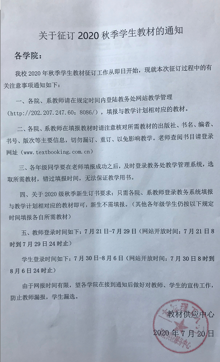 关于征订2020秋季学生教材的通知