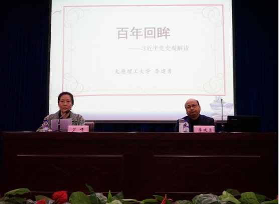 At the meeting, Professor Li Jianyong gave a profound interpretation of Xi Jinping's View on Party history from two aspects with the title of "Looking Back in one Hundred Years -- Interpretation of Xi Jinping's View on Party History". First, adhere to the guidance of Xi Jinping's view of party history to learn party history, explain what is Xi Jinping's view of Party history, the characteristics and nature of Xi Jinping's view of Party history; 2 it is to learn party history enlightenment ideas, create a new situation, too principle development mainly expounds the general secretary wu xi in governing wisdom, including adhering to the people as the center, insist on the thinking method of seeking truth from facts and adhere to the revolutionary ideals than day, finally tells the story of jinping party history view of the new era of our enlightenment - must be firmly set up the consciousness of spiritual motivation.