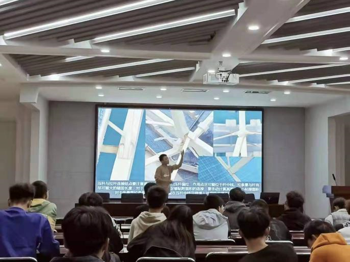 "Be responsible for the life of the building, be responsible for every decision you make" Zijian Zhang, a participating student from the class 2019 road and bridge major, shared the experience on component fabrication and node processing in detail, and put forward suggestions on the improvement direction of component fabrication and node processing in the future.