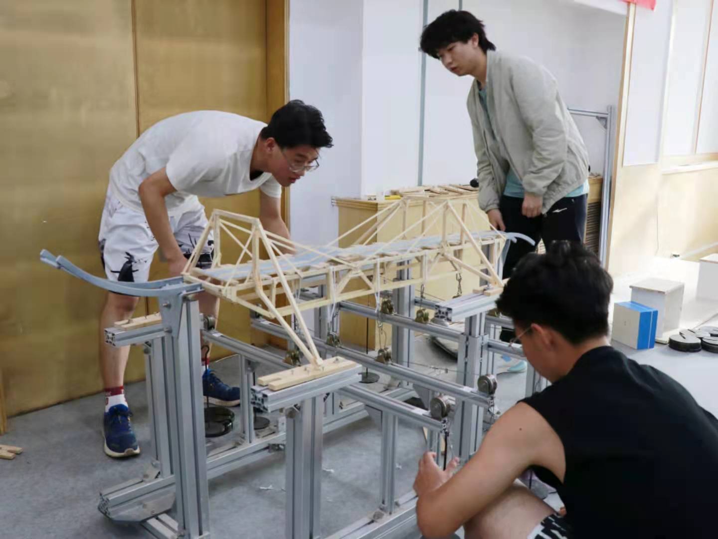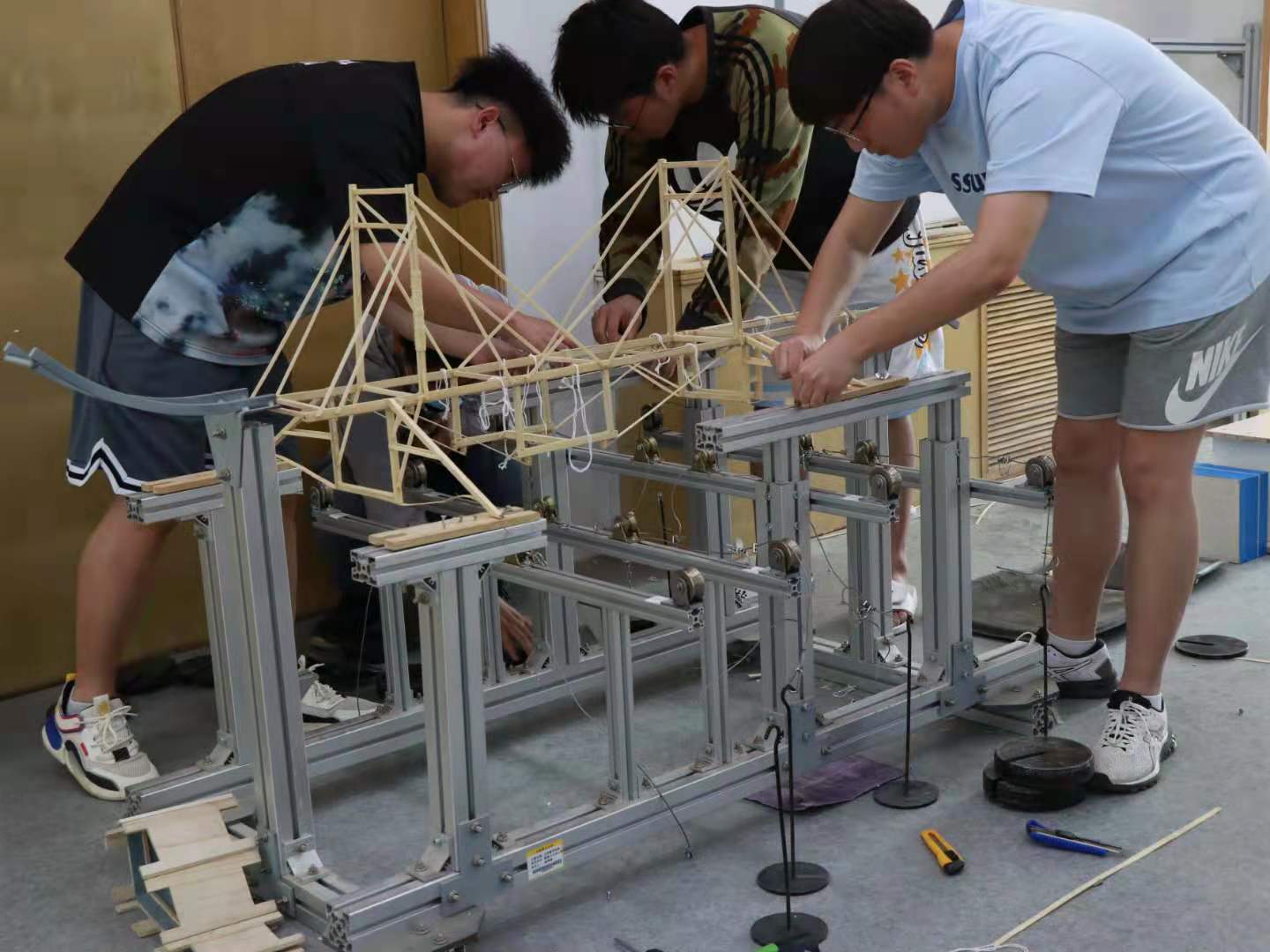 In order to display the achievements of the school's innovation and education, create a strong atmosphere of scientific and technological innovation and practice competition. On May 23, 2021, the 9th Taiyuan University of Technology Structural Design Competition was held at the Fifth-floor Structural Design Innovation Base of the Road and Bridge Building on the Yingxi Campus. The competition attracted more than 180 students from different grades and majors in the school to sign up for the competition. In the end, 17 teams were selected. Entering the final loading link, the Taiyuan University of Technology Structural Design Competition Committee Lu Guoyun, Cheng Xin and Zhang Jiaguang conducted on-site evaluations, and the participating students and instructors were present to observe.